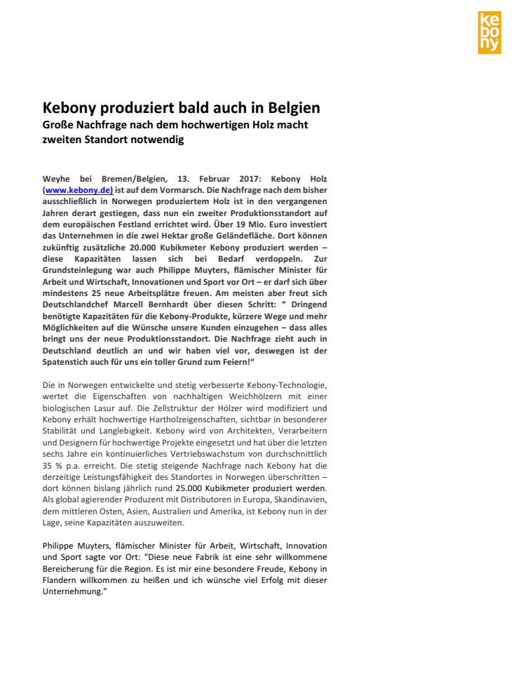 Kebony Holz wird bald auch in Belgien produziert - große Nachfrage macht zweiten Standort notwendig