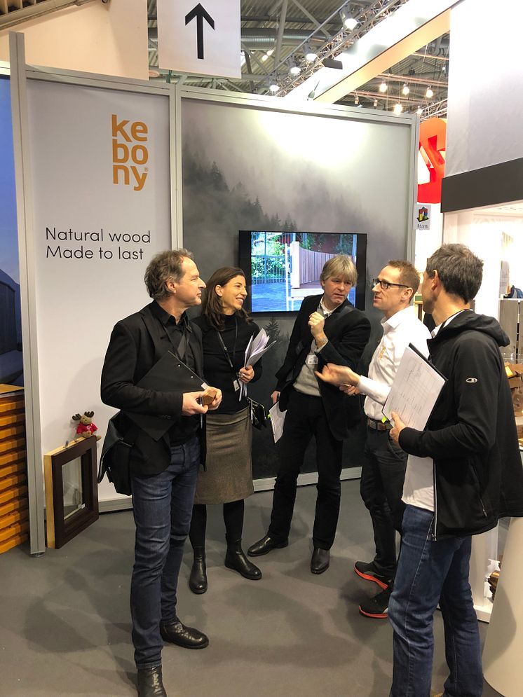 „Der Clou an Kebony: Haltbarkeit, Design und die Vereinbarkeit mit deutschen Bauvorschriften müssen sich nicht mehr ausschließen!“ – so kommentierte lachend Deutschlandchef Marcell Bernhardt den Aufruf aufs Siegerpodest. Am Abend des ersten Messetages zeichnete eine hochkarätig besetzte Jury das norwegische Unternehmen im Rahmen des „Innovationspreises ARCHITEKTUR & BAUWESEN“ aus. „Dass die Jury auch Kebony Clear (22 x 142) – das bisher einzige modifizierte Holz mit bauaufsichtlicher Zulassung – preiswürdig findet, macht uns stolz und bestärkt uns in unserem Qualitätsansatz. Bei der Preisverleihung zeigte sich dann die Jury überzeugt: „Kebony wird auch zukünftig den Holzbau beflügeln!“.