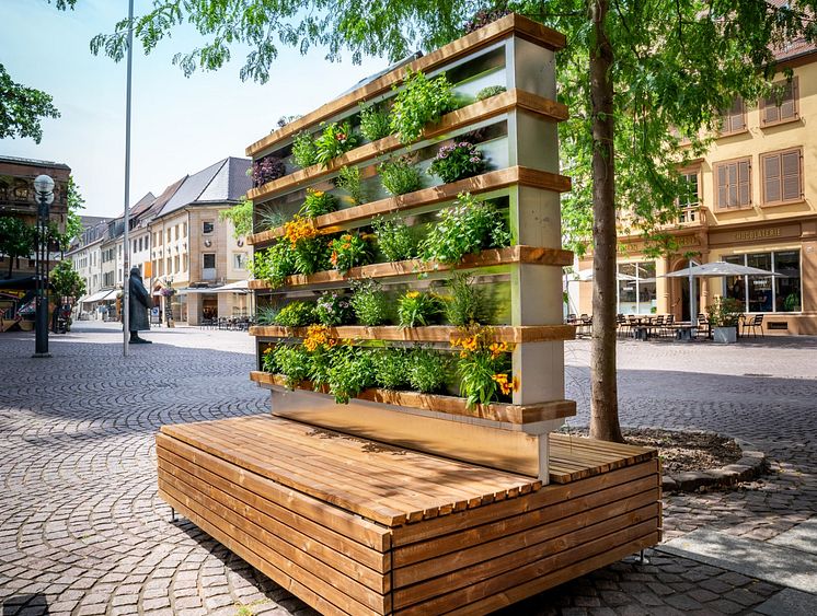 Das Start-Up-Unternehmen MobiGa aus Neustadt hat genau das im Blick und präsentiert mobile vertikale Gärten, die nicht nur für Erfrischung sorgen, sondern auch die Biodiversität in urbanen Räumen fördern. Ergänzt wird das System durch hochwertige Sitzflächen aus nachhaltigem und pflegeleichtem Kebony Holz. Mit einem Hochdrucksprühnebel-System wird das Angebot nun erweitert. Es verspricht, die Umgebungstemperatur an heißen Tagen um bis zu zwölf Grad zu senken – und das bei einem Wasserverbrauch von nur zwei bis drei Litern pro Stunde. Ein zukunftsträchtiges Modell für Städte und Gemeinden für die heißer werdenden Sommertage.