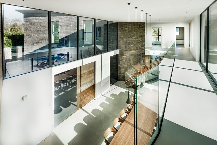 In Hampshire steht ein neu gebautes Familienhaus mit einer außergewöhnlichen Architektur – eingerahmt von großzügigen Außensportanlagen. Für die Fassade wählte das planende Architekturbüro AR Design Studio Kebony Clear. Diese Außenverkleidung wurde sehr bewusst für die Fassade des Anwesens verwendet, dessen drei ineinander verschachtelte Blöcke sich elegant um einen zentralen Innenhof anordnen.