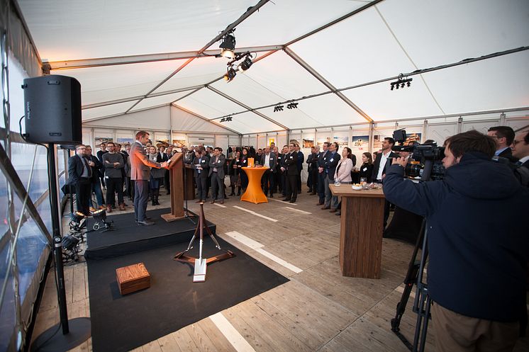 Publikum beim Spatenstich für die zweite Produktionsstätte für Kebony