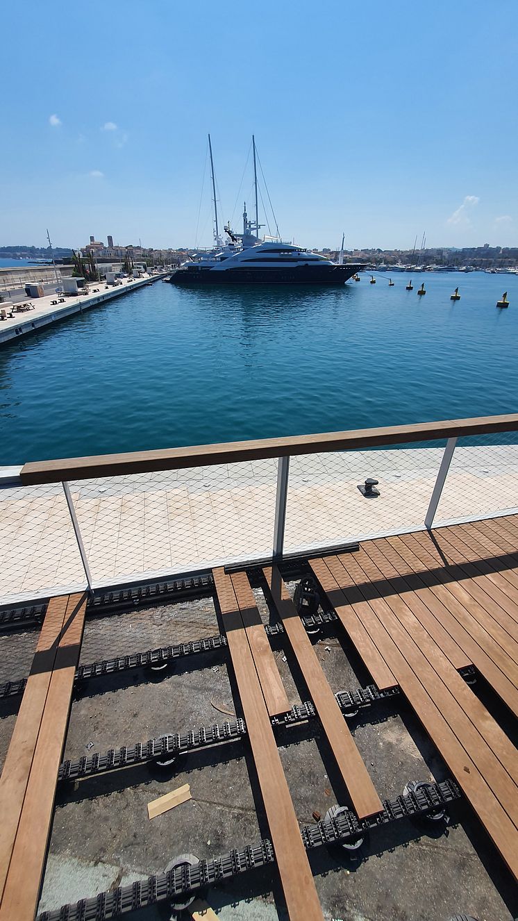 Die Renovierung des "Quai des Milliardaires" in Port Vauban an der Côte d'Azur hat Europas größten Yachthafen transformiert. Der Hafen, zwischen Cannes und Nizza gelegen, ist ein Paradies für Yacht- und Superyachtliebhaber mit über 1.500 Liegeplätzen. Seit Mai 2023 wurden der Kai und das IYCA-Gebäude modernisiert, um hochwertige Dienstleistungen und eine anspruchsvolle Ästhetik zu bieten. Die Architektur, eine Mischung aus traditionellen Techniken und modernen Materialien, wurde vom Atelier d'Architecture Philippe Prost entworfen. Das umweltfreundliche Kebony Clear-Holz wurde für die Außenbereiche verwendet, welches langlebig, pflegeleicht und ästhetisch ansprechend ist. Es steht für Nachhaltigkeit und Eleganz in dieser exponierten Meeresumgebung.