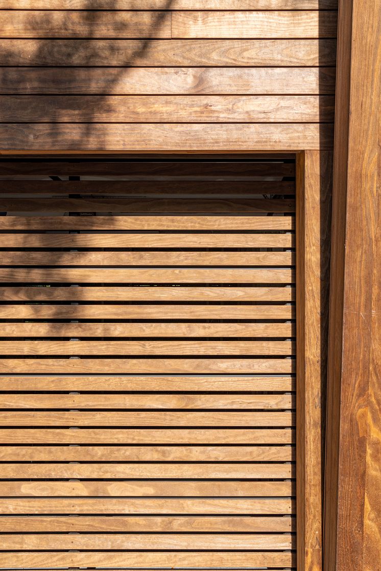 Mit einer Wohnfläche von 268 Quadratmetern (2888 ft²) zeigt das Victory Bay House eindrucksvoll die Vielseitigkeit und ästhetische Qualität der Kebony Clear Holzfassade. Kebony, bekannt für seine herausragende Haltbarkeit und ökologische Nachhaltigkeit, ist eine ideale Wahl für Holzfassaden, da es mit der Zeit eine wunderschöne silbergraue Patina entwickelt, die das Haus noch weiter in seine natürliche Umgebung einbettet.