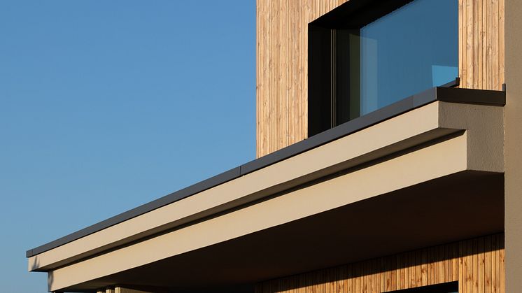 Bei diesem Objekt kam das Character Wechselfalzprofi 90 Grad in drei verschiedenen Breiten zum Einsatz, um die Optik aufzulockern. Zunächst sollte vorvergrautes Holz eingesetzt werden, dann ließ sich das Besitzerpaar aber doch von einer natürlichen Vergrauung überzeugen. Mit der Bewitterung wird das zunächst dunkelbraune Holz eine attraktive silbergraue Patina erhalten. Diese wird variieren, denn Sonne, Regen und Standort des Gebäudes beeinflussen die Vergrauung des Holzes. Eine unterschiedliche Verwitterung der Fassade entsteht auch durch Vordächer, Balkone, Auskragungen oder Fenstervorsprünge. Fassadenteile, welche der Wetterseite ausgesetzt sind, sind davon besonders betroffen. Ein Holzfassade ist jedoch immer individuell, auch eine Vorvergrauung kann keine einheitlich graue verwitterungsähnliche Färbung garantieren. Deshalb empfiehlt Kebony die natürliche Vergrauung, welche besonders charakterstark und pflegeleicht ist.