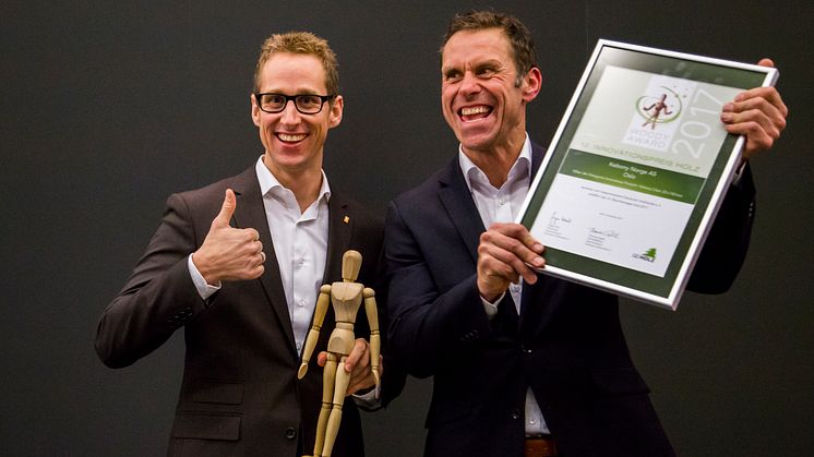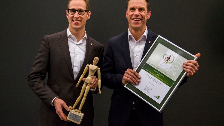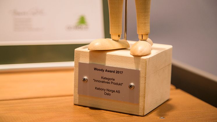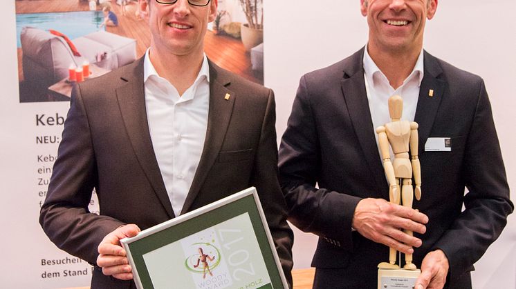 Köln/Oslo, 16.11.2017. Der norwegische Holzhersteller Kebony hat den „Woody Award“ vom GD Holz in der Kategorie „Innovatives Produkt erhalten“. Verliehen wurde der Preis auf dem Branchentag Holz in Köln.