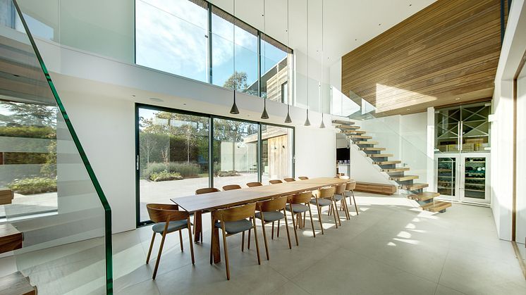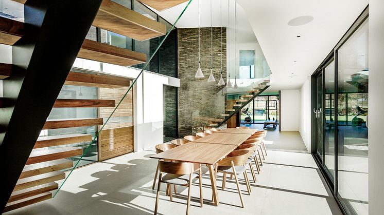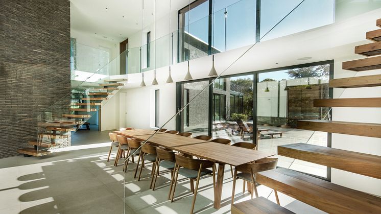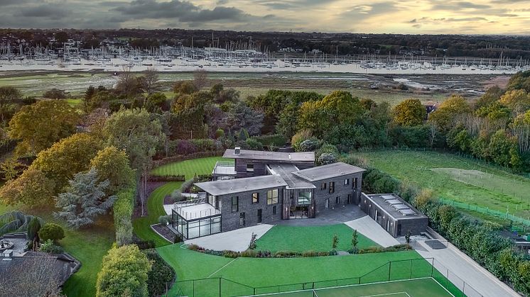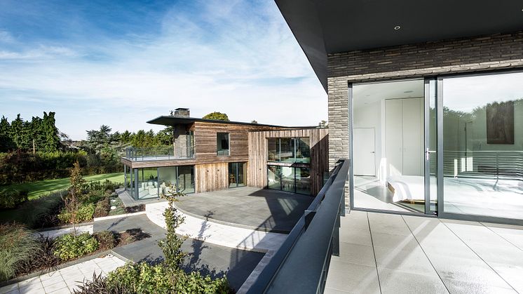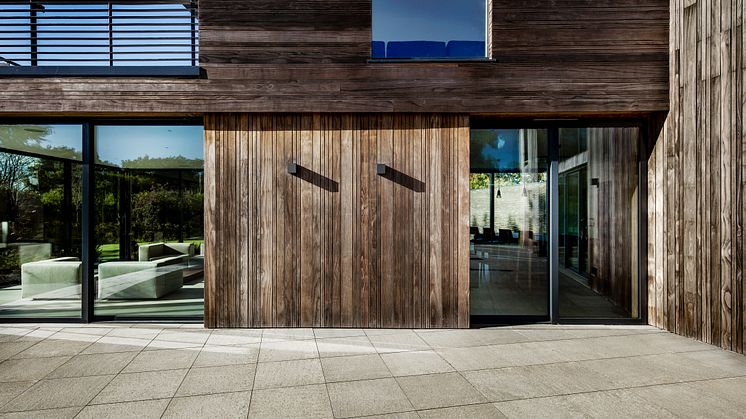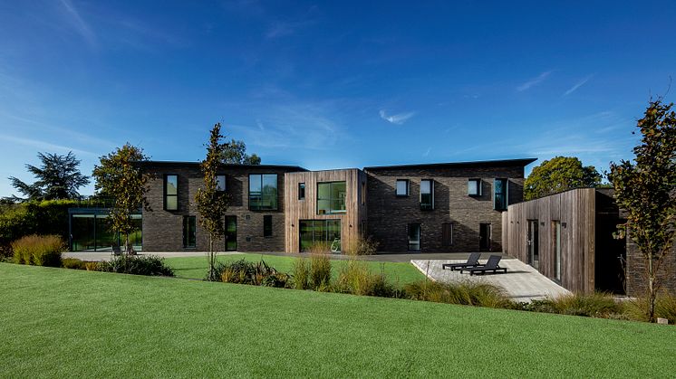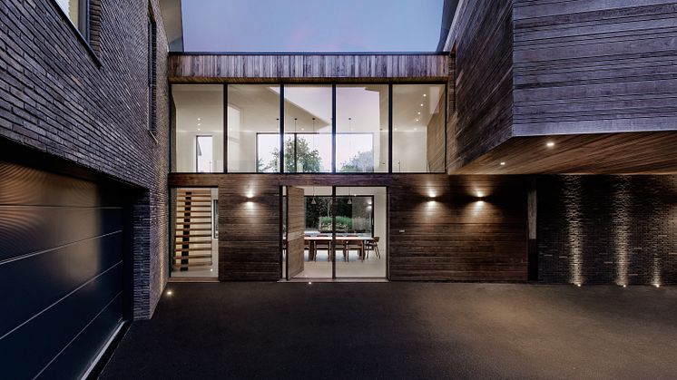 In Hampshire an der Südküste Englands steht ein Neubau mit einer außergewöhnlichen Architektur – eingerahmt von großzügigen Außensportanlagen. Für die Holzfassade des Familienhauses wählte das planende Architekturbüro AR Design Studio das norwegische Kebony Holz. Diese Verkleidung passt perfekt zum geschmackvollen Anwesen, dessen drei ineinander verschachtelte Blöcke sich elegant um einen zentralen Innenhof anordnen.