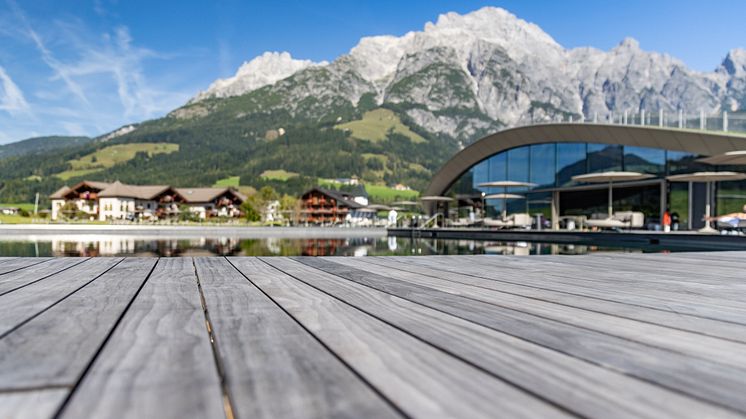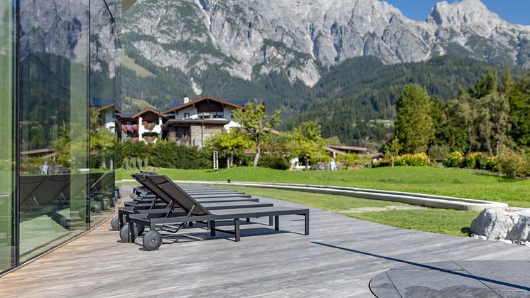 • Wellness Terrasse mit Holz: „ATMOSPHERE by Krallerhof
